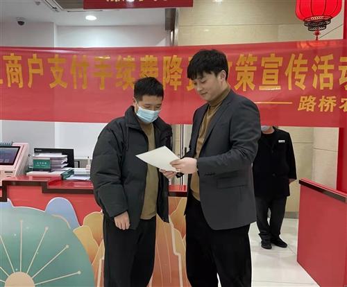近日,农行路桥支行根据总行要求,积极开展减费让利政策宣传活动,通过“减费让利 支付为民”主题宣传,实现了支付服务减费让利政策“入脑、入心”。