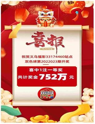 好运不断!3月3日,双色球第2022023期开奖,全国共开出9注一等奖,单注奖金744万元,其中1注喜降义乌。