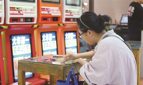 在旁边等待了一会儿,赵婉欣终于挤到了自助彩票机前,盯着屏幕思考了一会儿,她决定买3张“刮刮乐”,每张10元,共花了30元。