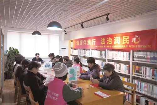 除了在室外的传单发放和法律咨询,网点志愿者还在室内为居民开设了一节小课堂,宣传科学理财与反电信诈骗知识,并介绍清廉金融的有关内容。“清廉与法治是相辅相成的,清廉文化能够帮助家庭成员树立正确的价值观和道德观念,维护家庭的稳定。”工行相关负责人介绍道。