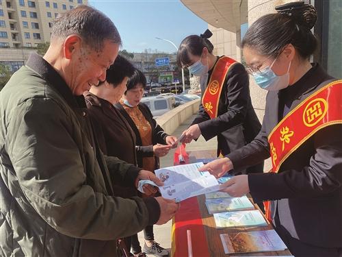 在网点门口,面向公众开展趣味小游戏,设置印有各种标语奖品的套圈游戏,让群众在游戏中增长防诈知识;向客户发放印有反诈提示的购物袋,由工作人员现场讲解反诈知识,分享电信诈骗典型案例,增强广大群众的反诈知识点。