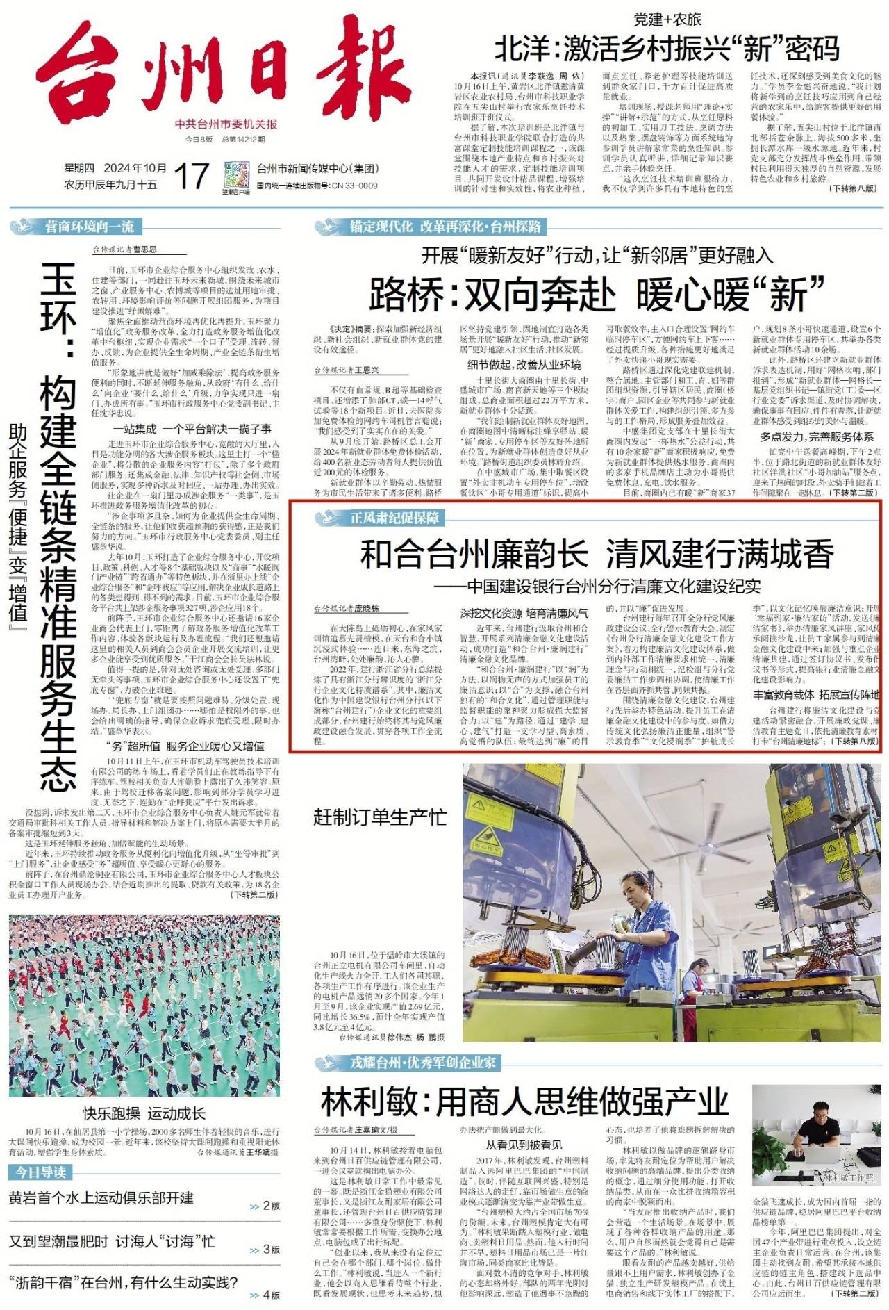 以清廉为底色,以和合为传承。台州建行在复杂多变的市场环境中稳步前行,为台州金融秩序繁荣稳定和客户“钱袋子”安全保驾护航。
