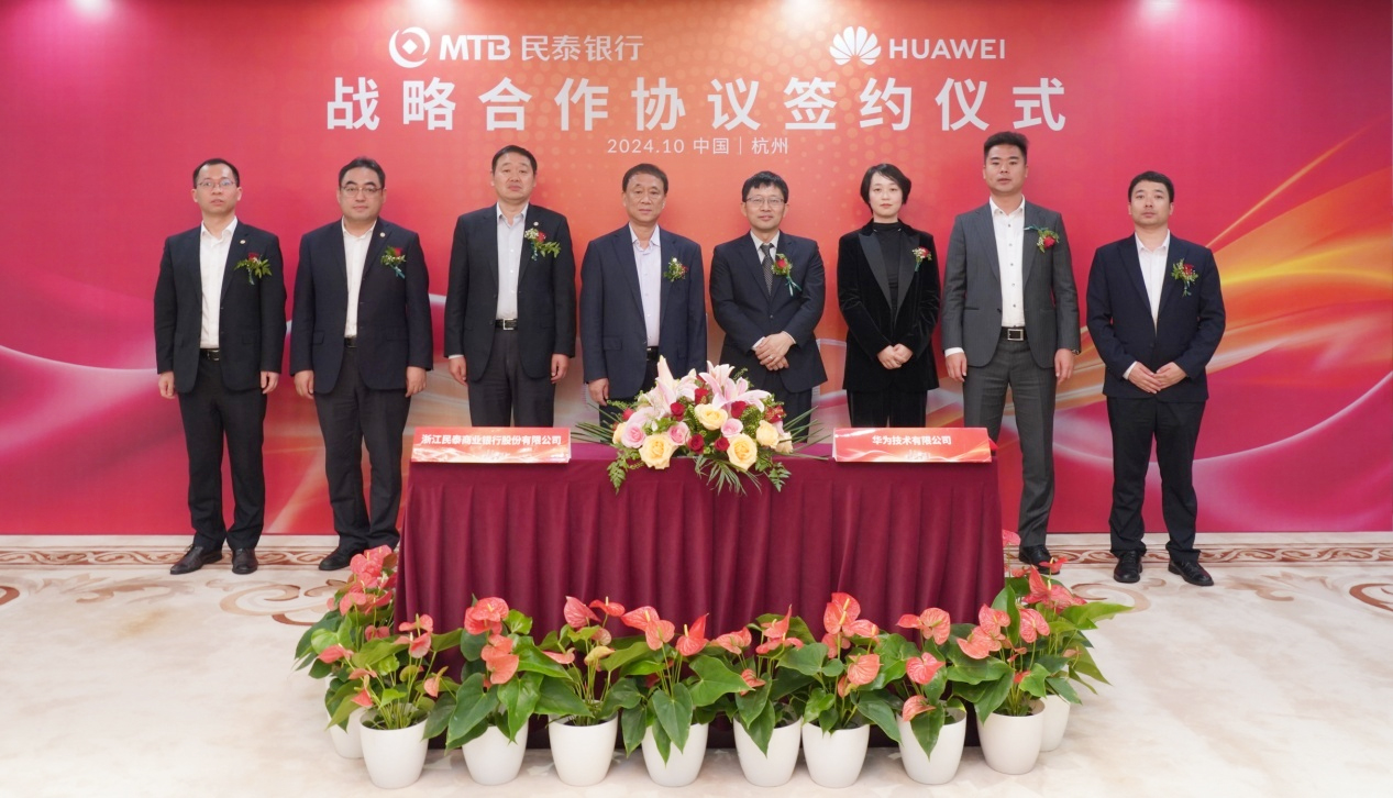 10月31日,浙江民泰商业银行股份有限公司(以下简称“民泰银行”)与华为技术有限公司(以下简称“华为”)在民泰银行签署战略合作协议,正式建立战略合作伙伴关系。