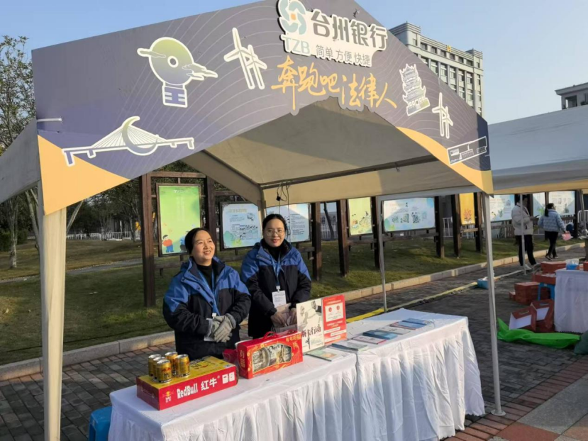 比赛期间,台州银行南片区域开设“金融摊点”,向参赛选手和观赛群众开展防诈及金融知识宣讲,为跑赢“天下无诈”注入金融力量。