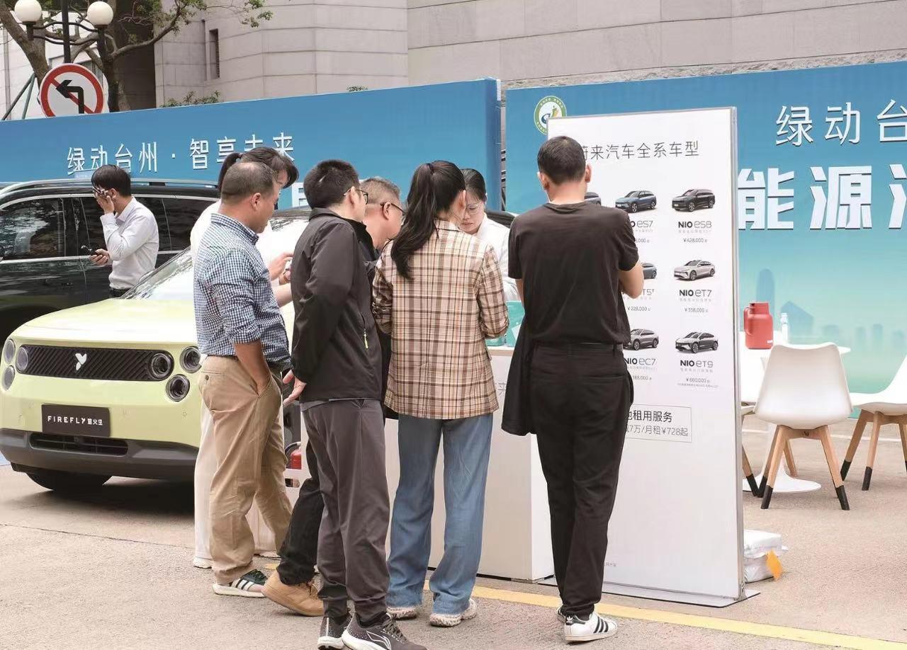 4月24日,由台州市机关事务管理局联合中国建设银行台州分行开展的“绿动台州·智享未来”车展--新能源汽车推广展示活动在椒江举行。当天中午12点,活动现场人头攒动,各家车企展位前都围满了前来咨询的市民。