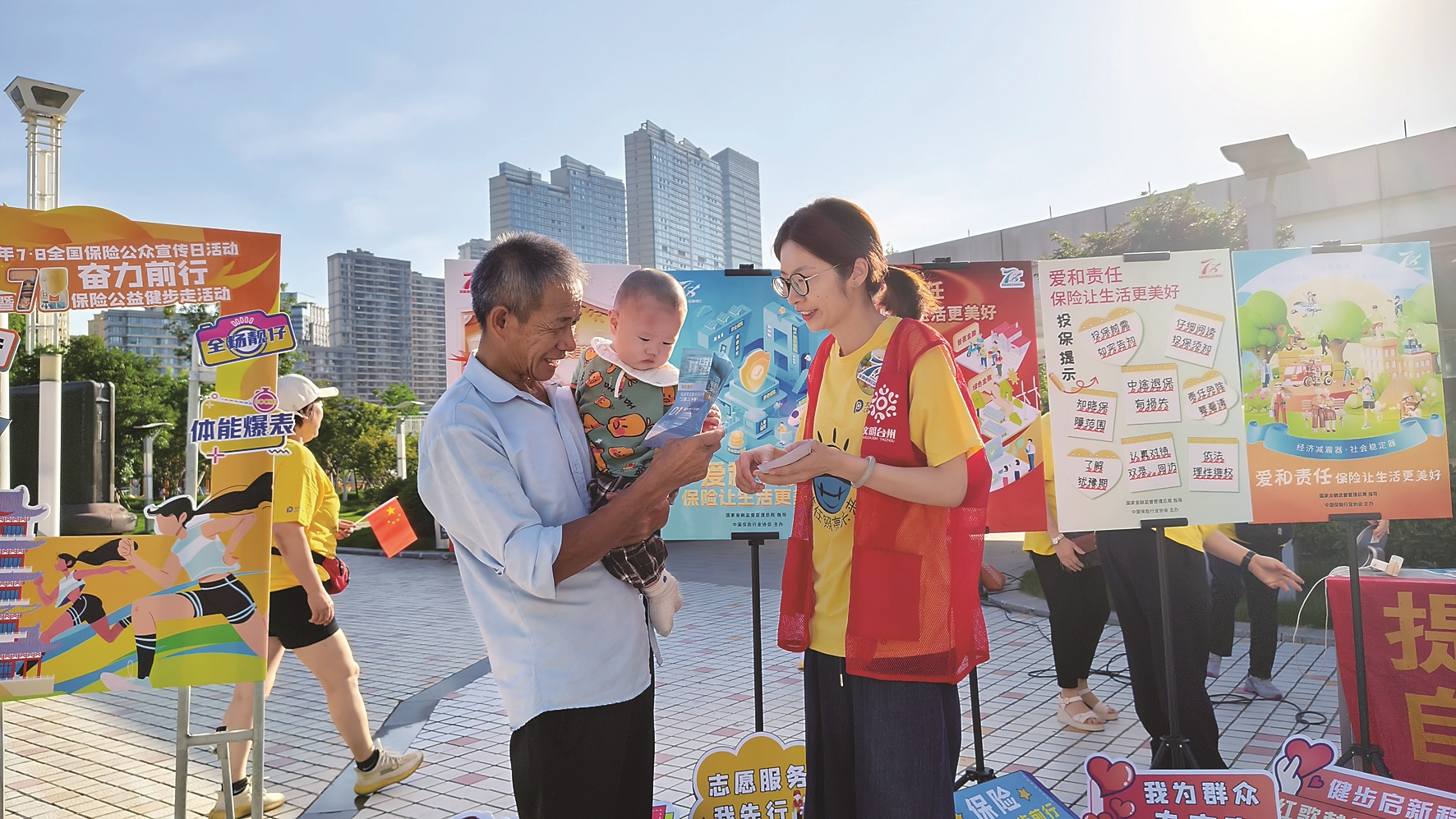 在椒江区市民广场和路桥区中央山公园的活动现场,保险从业者们手持宣传单,向过往行人讲解保险功能与价值,传递“金融为民”的理念。