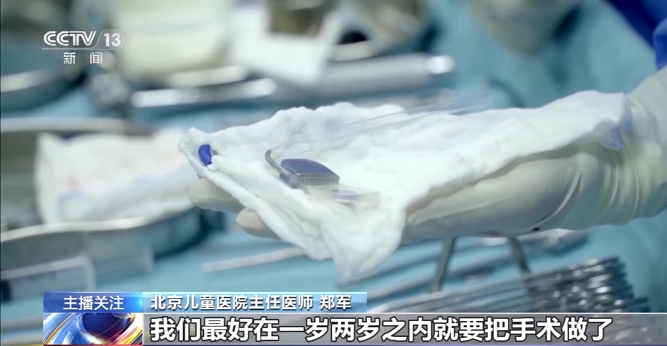北京儿童医院主任医师 郑军:我们最好在一岁两岁之内就要把手术做了,效果会特别好,训练语言形成高峰期在三岁,三岁以后要走下坡路了,像重度(听力障碍)从来不会说话的,你要四五岁孩子要做完手术以后,他有时候大脑(掌管听力的功能)会有些退化,退化以后他就说我们(人工耳蜗)机器很好,听的声音也很好,他理解就会有差一点。