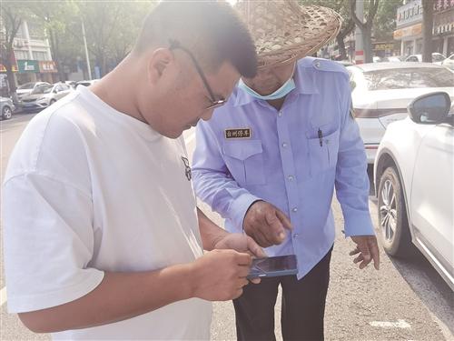 由于车主不清楚如何操作,王保来接过对方的手机,一边帮其操作,一边耐心解释。