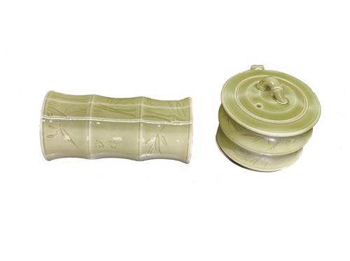 “大部分青瓷器,是我们自己烧制的。”谢振威说,一开始做大型摆件比较多,现在除了仿制青瓷香炉,还仿制了越窑牡丹纹龟纽盖罐、越窑莲瓣盏托等,配上茶杯,作为伴手礼。