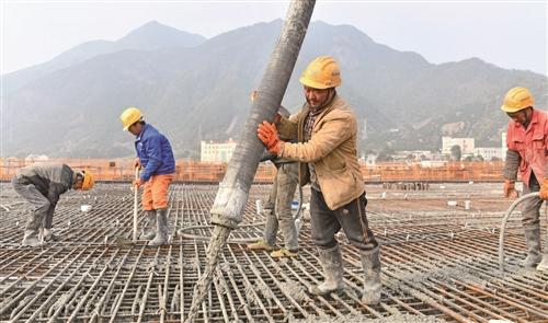昨日,在杭温铁路台州市仙居特大桥建设项目现场,中铁上海工程局工人们冒严寒在加紧施工作业,稳步推进工程进度。