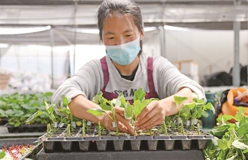 5月4日,仙居县田市镇一家蔬菜育苗基地的农民正忙着嫁接幼苗,以满足市场和农户需求。近年来,该县全面推进标准化生产,以高效设施农业栽培技术,培育抗病、高产、优质的各类蔬菜品种幼苗,为农户提供优质低价的种苗,带动农民增收,助力乡村振兴。