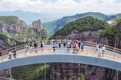 图为游客在如意桥游玩。 图片由浙江神仙居旅游集团提供