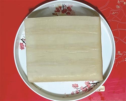 “制作南糕,先将优质米用水浸透,夏天大约4小时、冬天大约6小时,捞出后再用石磨磨制成米浆;按1斤米3.5至4斤米浆的比例进行兑水,添加少许碱和盐后,不断搅拌;蒸南糕时,要在蒸笼底部铺上棉布,再倒入米桨,让蒸汽能够散发出去;等蒸汽上来后,先浇注上第一层米浆,熟后再加浇一层,每层厚3毫米左右;这样重复浇上十多层,才能制作成一木抽屉的南糕;蒸出的南糕,整块成型又各自成层,这是它的最大特征。等冷却后脱笼,就可以吃了。”朱文勇说。