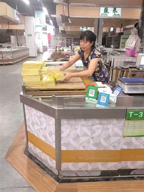 “我在这里卖南糕有13年了,现在一天能卖200多斤,每斤2.5元,以批发为主,一般卖给超市和饭店。大部分客人都到菜市场里拿,还有一些需要我送货上门。”张仙华说。