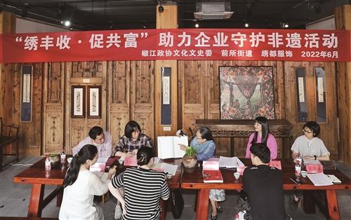 6月7日下午,在位于椒江区前所街道的台州刺绣博物馆里,椒江区政协文化文史和学习委组织的“绣丰收·促共富”助力企业守护非遗活动火热进行。椒江区政协委员和非遗传承人、工匠们一起座谈学习了《习近平总书记谈共同富裕》《坚定文化自信,建设社会主义文化强国》等文章,深入交流了非遗传承、情怀责任、工匠精神、共同富裕实现路径等话题。