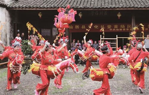 民俗文化展演 村民大饱眼福 2022-06-21 09:11:38 来源:中国台州网-台州日报 作者:泮雅云 6月17日,由仙居县委宣传部主办、皤滩乡党委政府承办的仙居县文化礼堂首场民俗文化活动,在该乡山下村举行。此次展演内容丰富,跳跳马、越剧等,让村民大饱眼福。图为万竹王村文化礼堂选送的跳跳马表演。 编辑:泮非非 责任编辑:杨能勇 审核:刘锦萍 台州日报 台州晚报 分享至微信: X 精彩图片 谨防高考招生诈骗 S1线首批内燃调机车正 ... 横街:文旅节刺激消费 幼儿欢乐定向表演大赛 分类信息 整改情况公示(20-2)MV丨《领航》东海文学2022年度报纸征订浙江省土地管理条例市新闻界书画摄影展垦荒精神立心承诺书身边的雷锋通化日报数字报公祭网台州概况不忘初心 牢记使命初心在身边整改情况公示(三)整改情况公示(20-3) 相关阅读 版权和免责申明: 凡本网注明“来源:中国台州网(包括台州日报、台州晚报、台州新闻APP)”或电头为“中国台州网”的所有作品,均为中国台州网独家版权所有或有权使用的作品,未经许可不得转载或镜像;授权转载必须注明来源为"中国台州网",并保留"中国台州网"的电头。