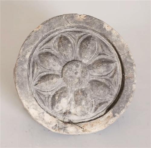 章安的莲花瓦当,通常被认为是六朝早中期以后出现的瓦当品种,目前在章安发现的数量极少。2021年,章安考古发掘出土了一块莲花瓦当,这块瓦当中心有6颗凸起的莲子,但是和一般的六朝莲花瓦当不同,这块瓦当的当沿宽且矮,莲花瓣肥大。笔者认为,这是六朝晚期的莲花瓦当,已经有了隋唐莲花瓦当的特征。