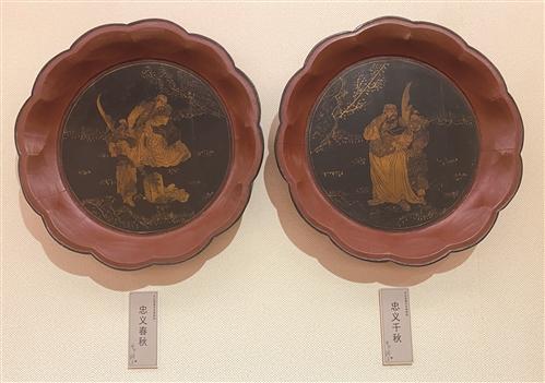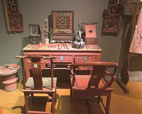“朱砂是一种昂贵的材料,而朱漆的颜色就与朱砂含量有关,以鲜红明亮为佳。像这些红妆数百年不变颜色,就是因为使用了黄金、朱砂、生漆等天然名贵材料。”李伟育指了指墙壁上的盘子表示,使用朱砂的盘子大多是果盘和祭盘,它们虽然年代久远,但是没有留下时间的痕迹。