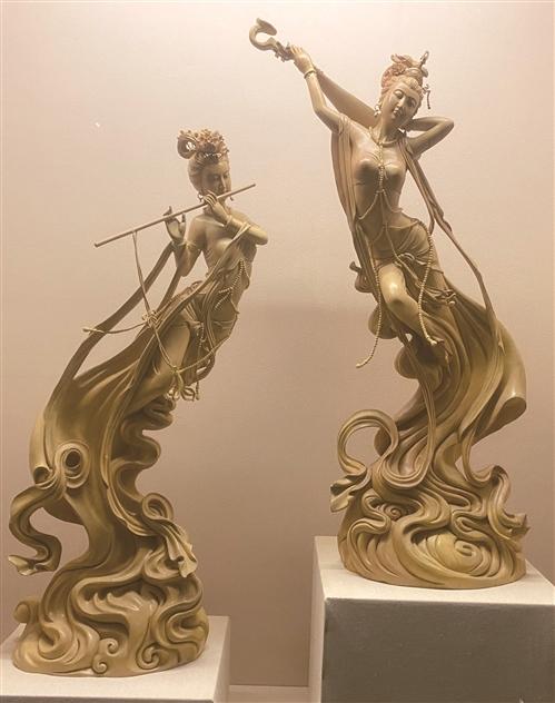 在天弘造像博物馆的序厅,展示了大型的夹苎脱胎漆艺作品,多为唐式风格,细节考究,工艺精湛。