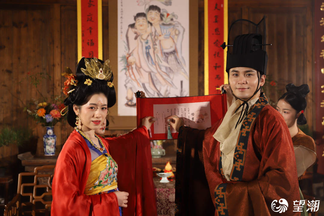 新郎新娘在婚书上印上各自的名字,以昭示此心不移。