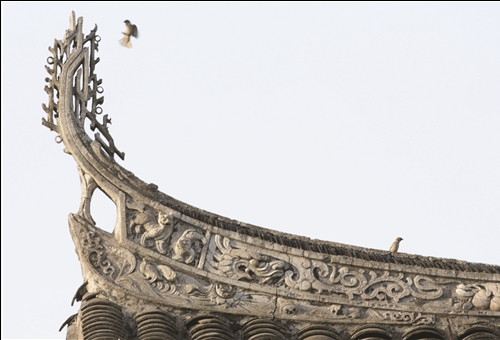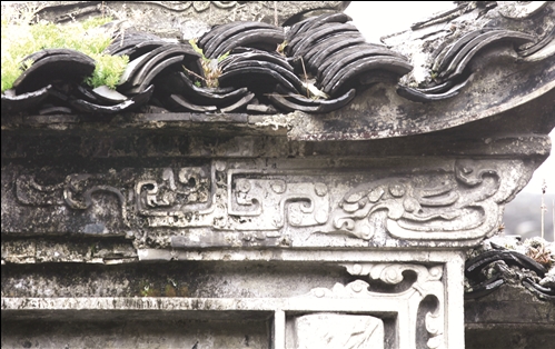 灰雕的龙纹屋脊、龙纹照壁、龙纹台门,都可在镜头中寻到,有些比较抽象的图案,须得仔细观察才能发现龙的踪迹。