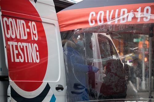 3月28日,一名男子在美国纽约时报广场一个新冠病毒检测点接受检测。