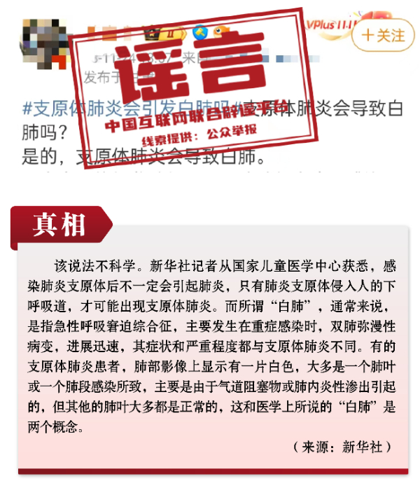 谣言1:感染肺炎支原体一定会得肺炎?会出现“白肺”?