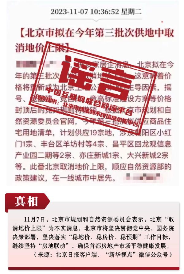 ——中国互联网联合辟谣平台2023年11月辟谣榜综述