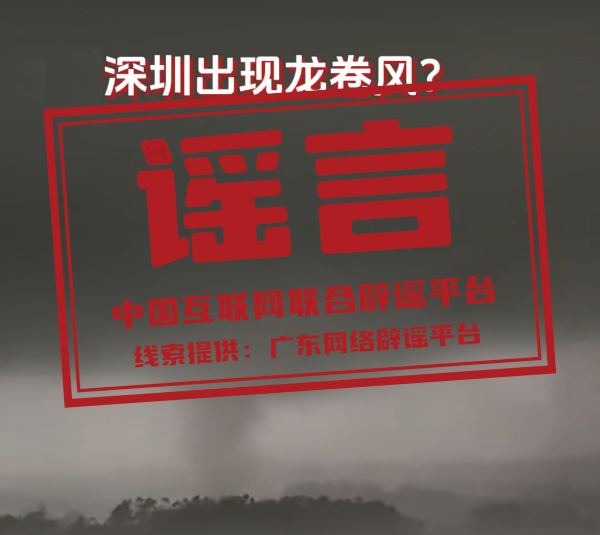 真相:9月6日,有定位在深圳的某社交平台网民发布视频称“龙卷风都来了,风雨无情……”,引发关注。经深圳市应急管理部门证明,该视频画面为2024年8月13日发布的旧闻,事发地也并非在深圳。(来源:深圳新闻网)