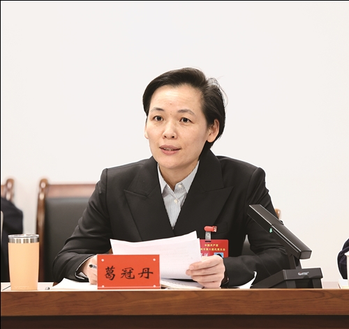 1月2日,椒江代表团葛冠丹代表建议发挥产业园区的专业性、集群性,培植壮大主导产业,构建具有竞争力生态圈。 台传媒记者孙金标摄