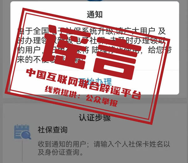 辟谣:短信提示社保账号状态“异常”需速办登记认证?假的!