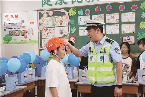 近日,温岭市乡村七巧爱心服务社联合箬横镇社工站、箬横交警中队走进箬横镇中心小学开展“快乐暑期 安全先行”毕业生暑期安全教育活动,给孩子们传递交通安全知识,为他们的暑假生活增添了一份安全保障。 台传媒通讯员朱国兵摄