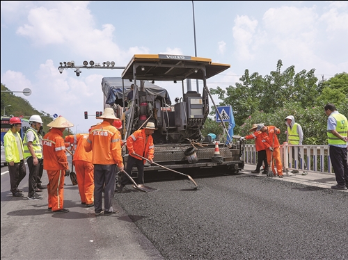 8月15日上午,在椒江二桥北接线X112椒松线大树岙村路段,低碳常温反应型特种沥青混合料正有序摊铺。据了解,该混合料具备初期强度高、快速恢复交通、耐久性佳、使用寿命长等多项优势,能有效完成雨天道路病害的高效、快速、永久性修复,也是台州首次在国道干线公路路面养护项目工程中运用该混合料技术。