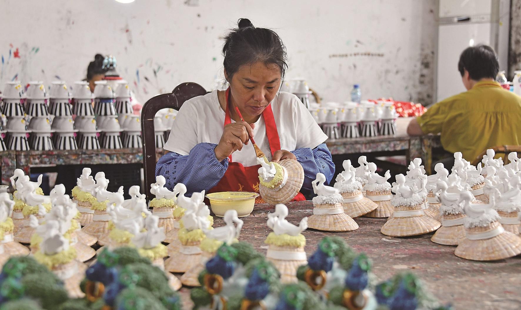 6月10日,仙居县上张乡扬帆工艺礼品厂车间内,工人正在赶出口订单。仙居坚持“小玩具做成大产业、小玩具促进大发展、小玩具促进农民共富裕”发展定位,生产的工艺品小玩具出口世界各地。目前,该县有工艺品生产企业上千家,直接从业人员5万余人,带动相关配套行业从业人员超10万人。