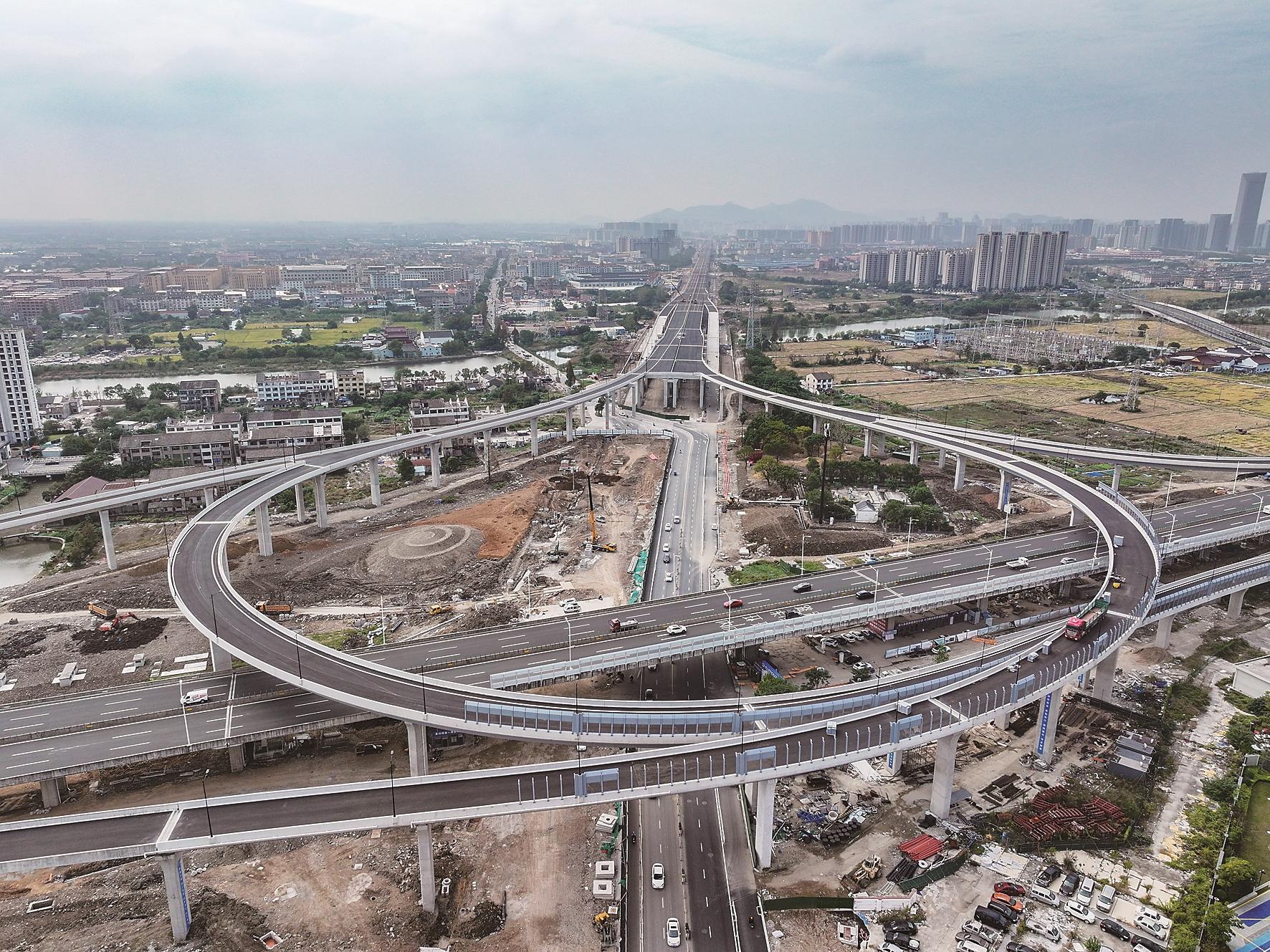 11月10日,路泽太高架二期沙王互通段,工人正加紧安装桥面隔音墙。工程南接一期,北至一江山大道,高架主线长约4980米。目前整体进度已完成85%,桥梁主体接近完工,地面道路与排水工程同步推进,正全力确保12月26日实现贯通目标。